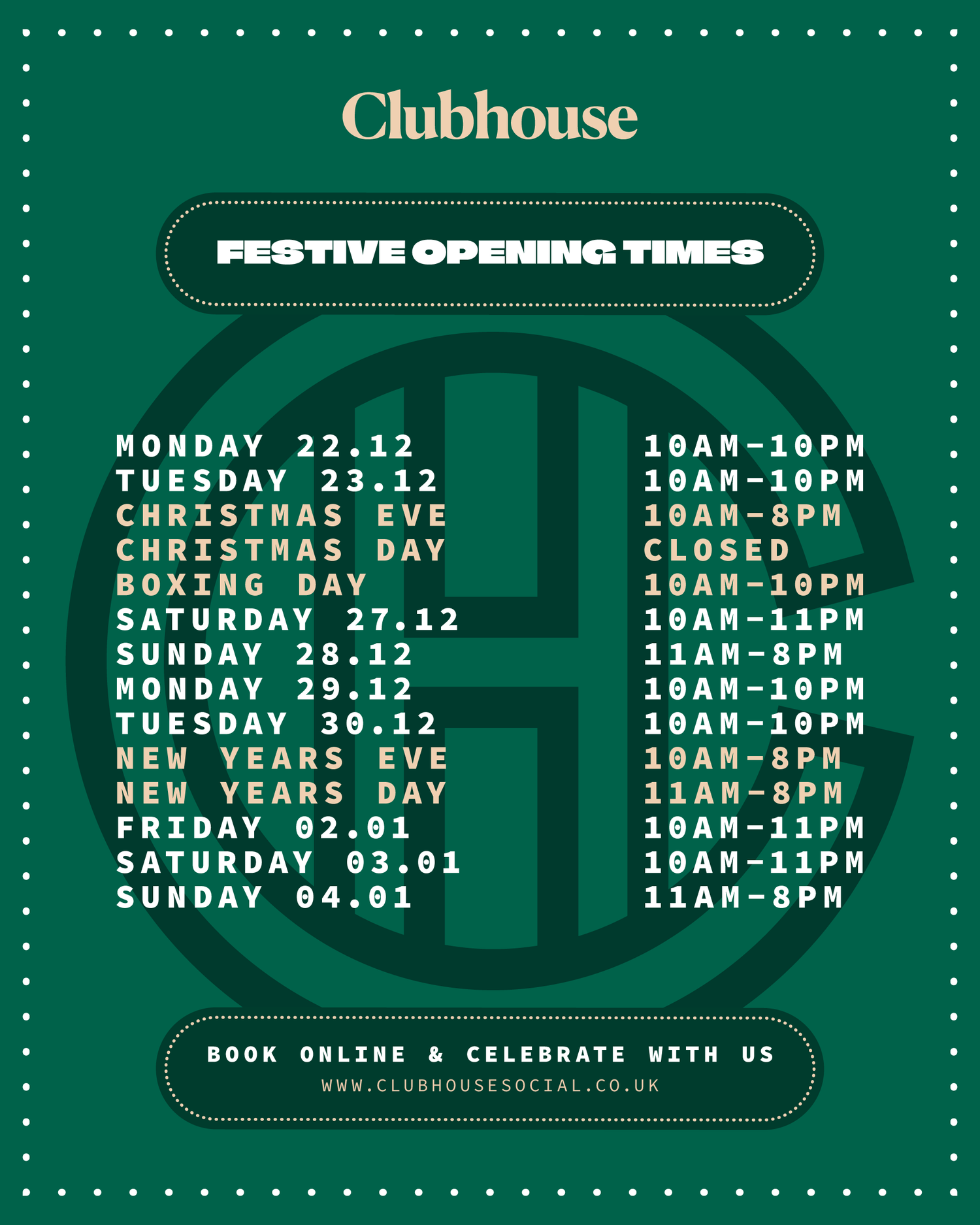 This holiday season, celebrate in style at Clubhouse.
